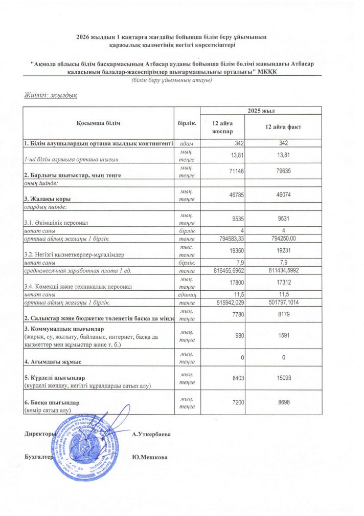 2025 жылдың қаржылық қызметі.