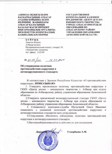 Об утверждении политики противодействия коррупции и антикоррупционного стандарта